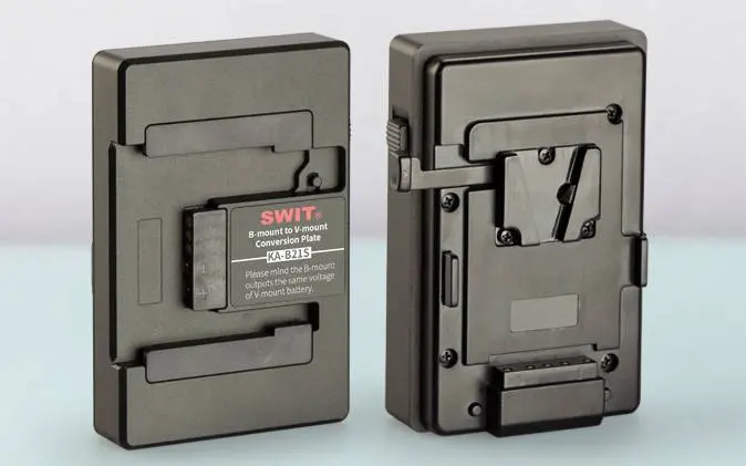 Die KA-B21S Conversion Plate ergänzt die Hotswap Plate perfekt, indem sie eine flexible Lösung für die Stromversorgung bietet. Diese Umwandlungsplatte ermöglicht es, V-Mount Akkus mit B-Mount Kameras zu verwenden, einer neuen Batterieschnittstelle, die verschiedene Spannungen unterstützt (12V, 24V, 26V) und noch mehr Power für modernes Filmequipment bietet. Da SWIT direkt am Design dieses B-Mount Standards mitgearbeitet hat wird die passende Komptabilität garantiert.