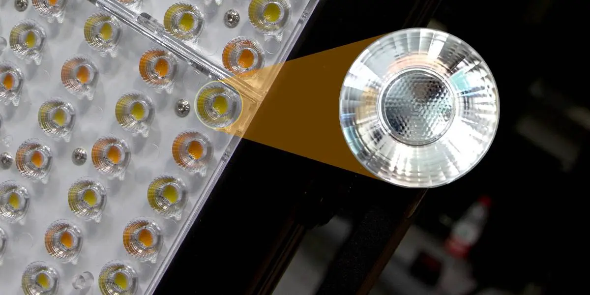 Besonders hervorzuheben ist die 45° Reflektorlinse auf jeder SMD-LED, die den Streueffekt verbessert und Farbfehler verringert. Somit ist die Lampe besonders für Studioaufbauten geeignet.